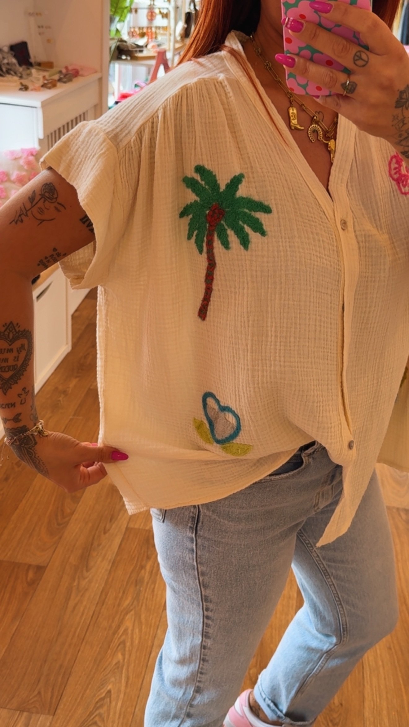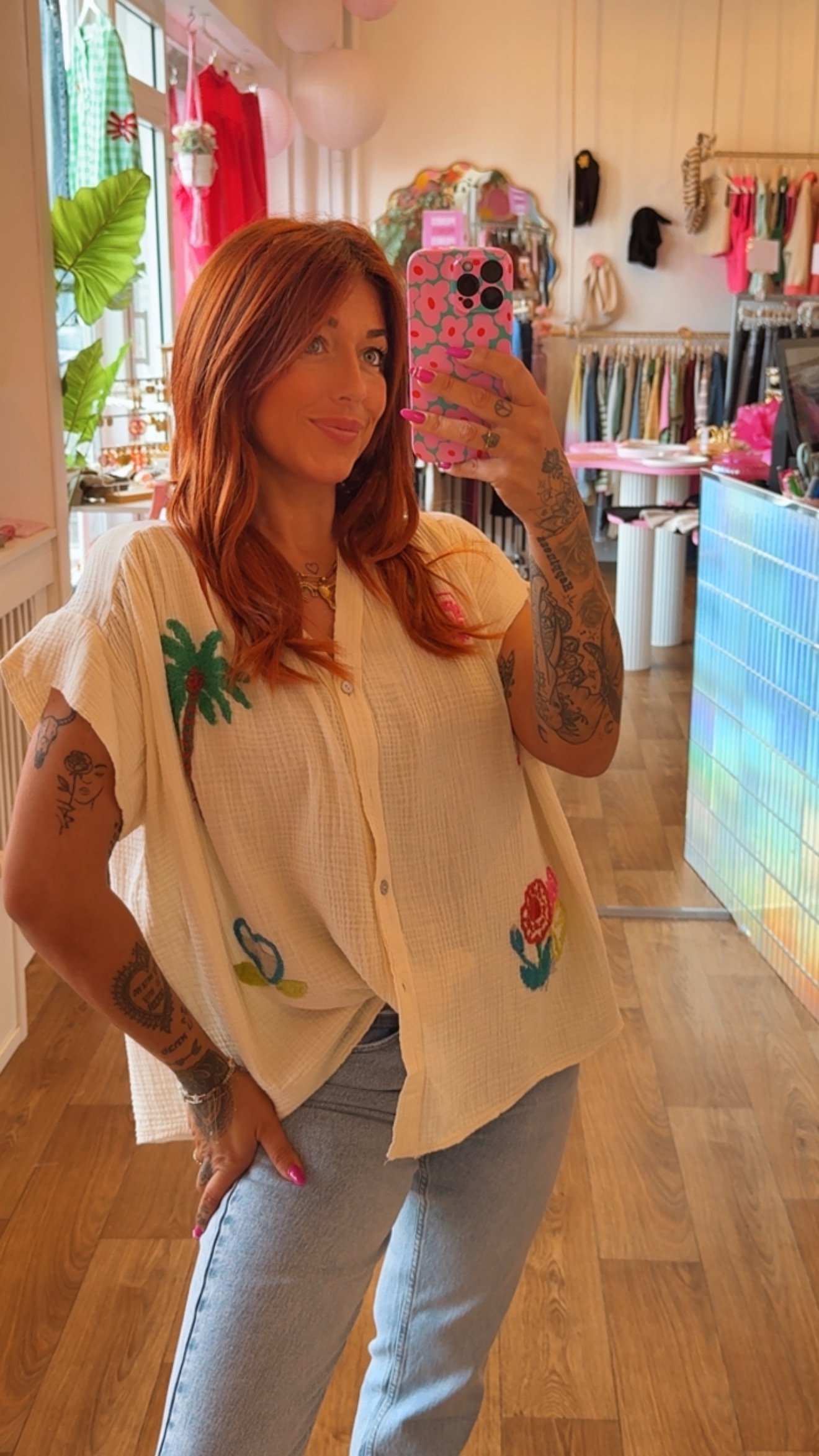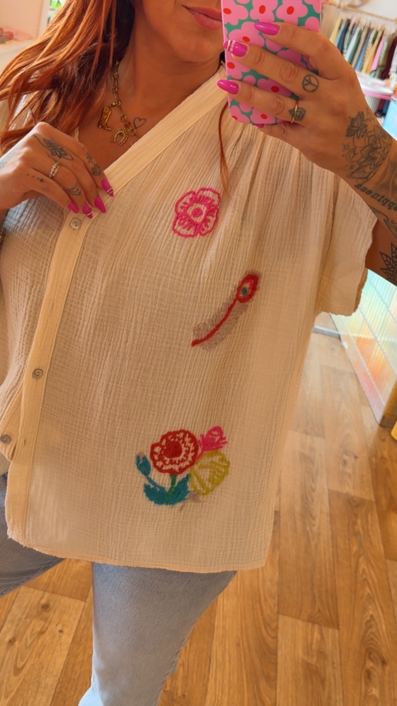 BLOUSE BRODERIE FLEURIE ECRU