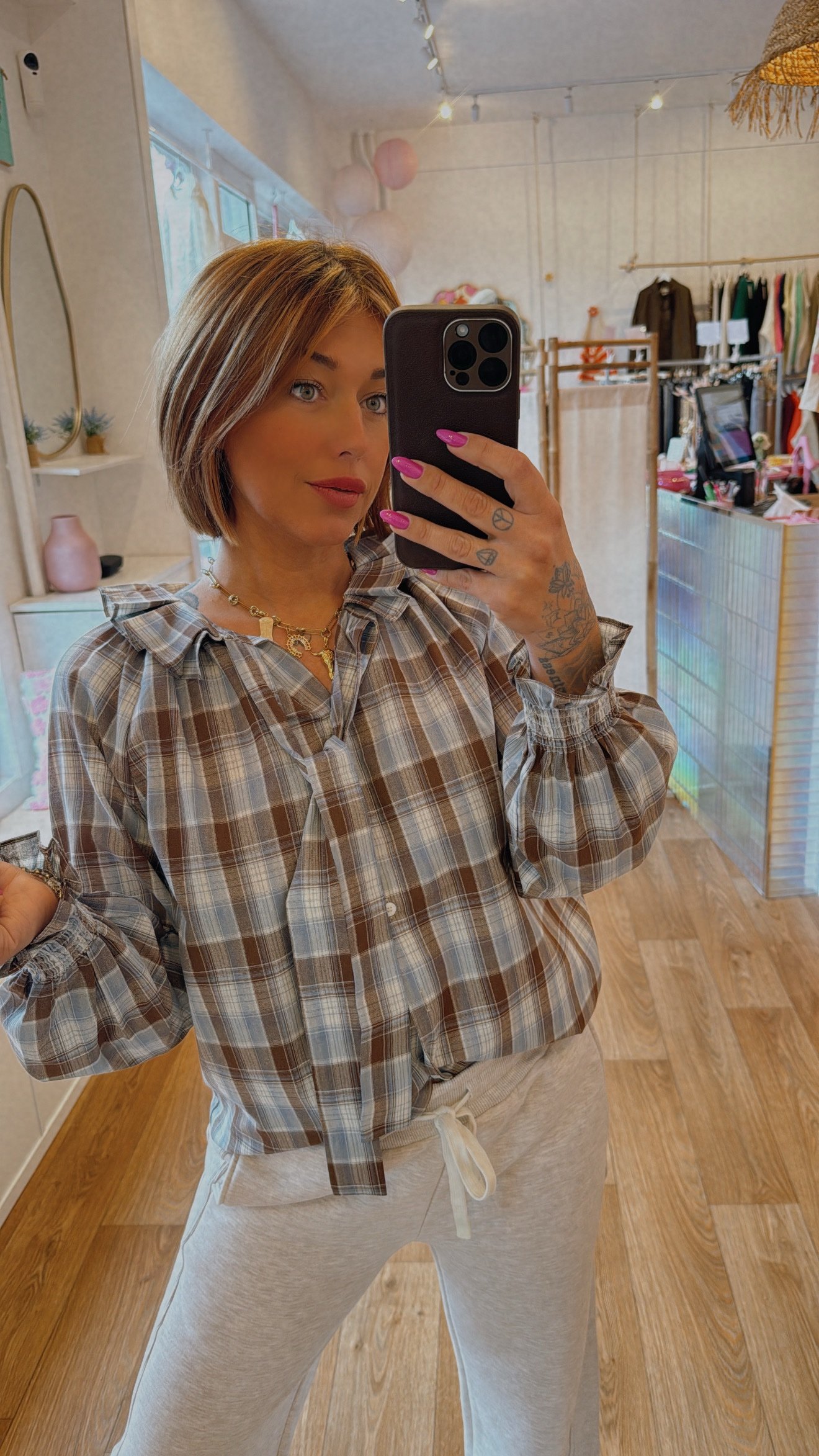 BLOUSE ECOSSAISE BLEU CIEL S/M