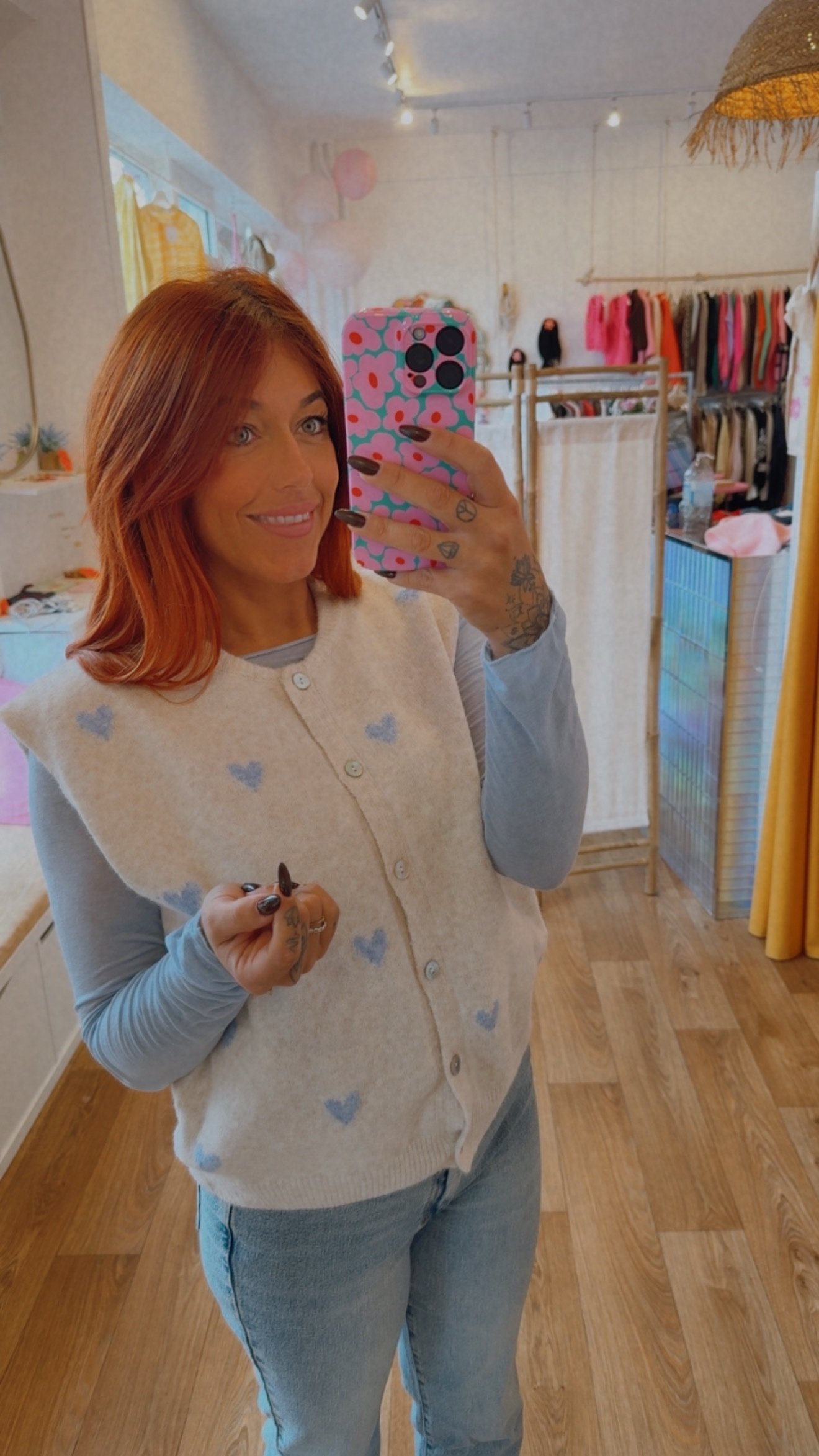 / GILET SANS MANCHES ECRU COEUR BLEU