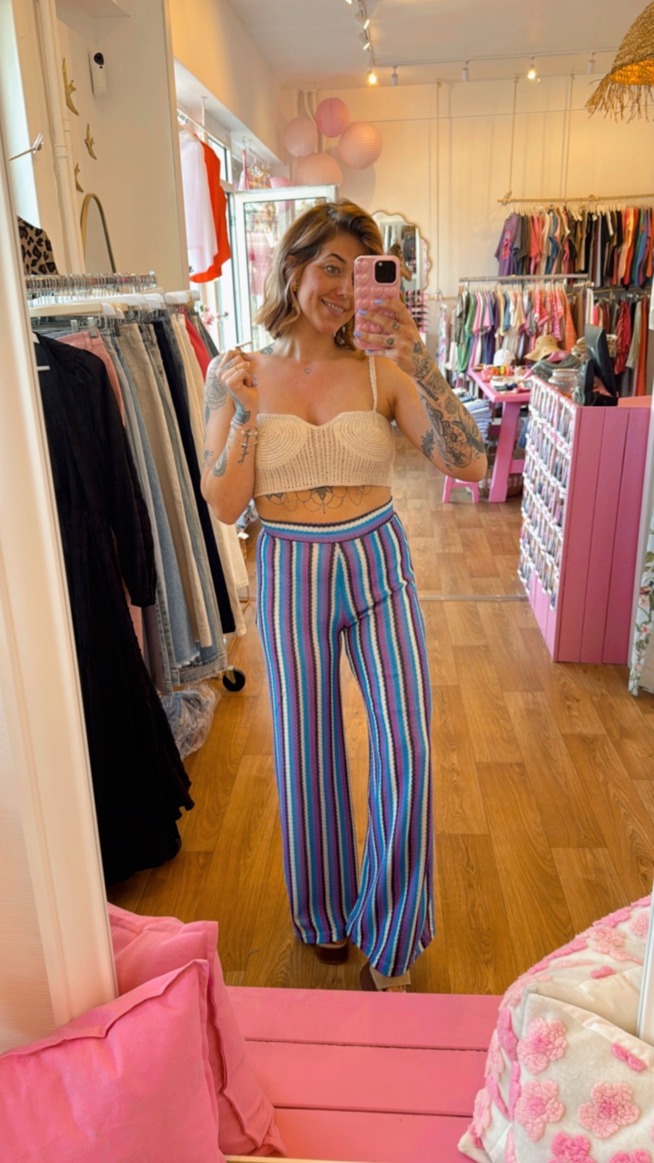PANTALON CROCHET BLEU/ VIOLET T . L