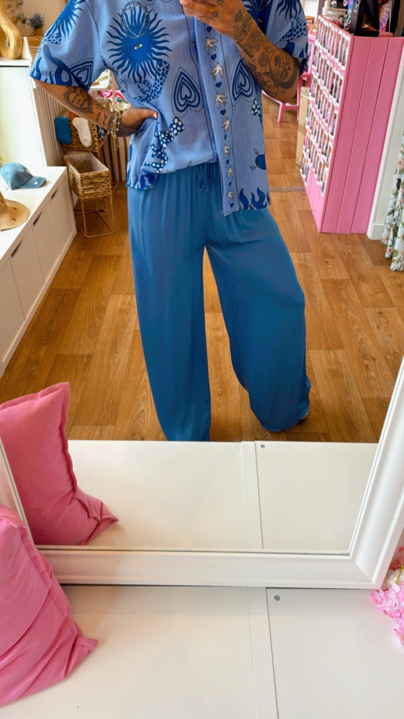 PANTALON FLUIDE BLEU SOIE 20%