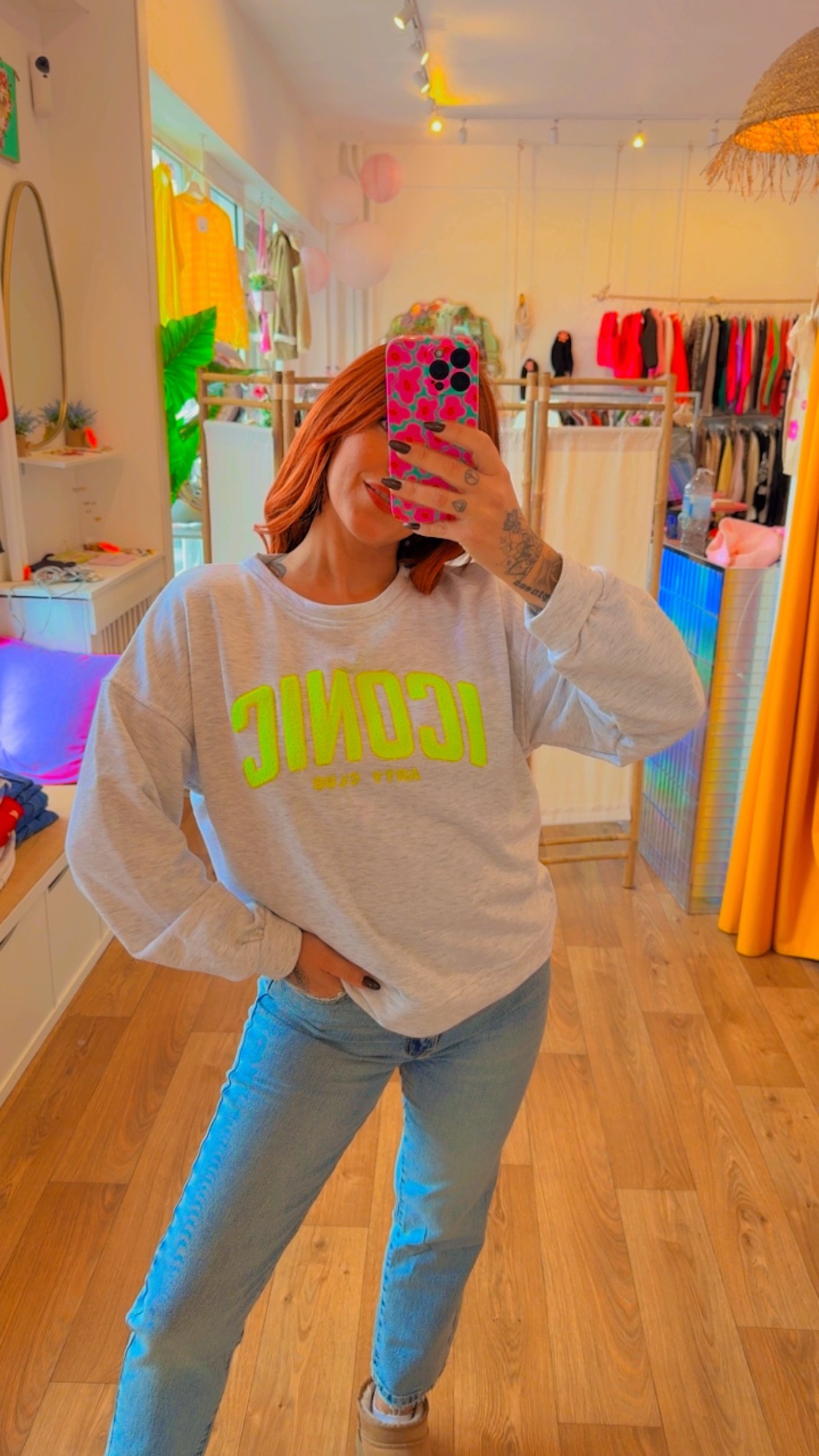 / SWEAT ICONIC N 2 GRIS / JAUNE FLUO